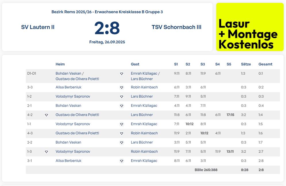 Herren III: Klarer 8:2-Auswärtssieg beim SV Lautern II