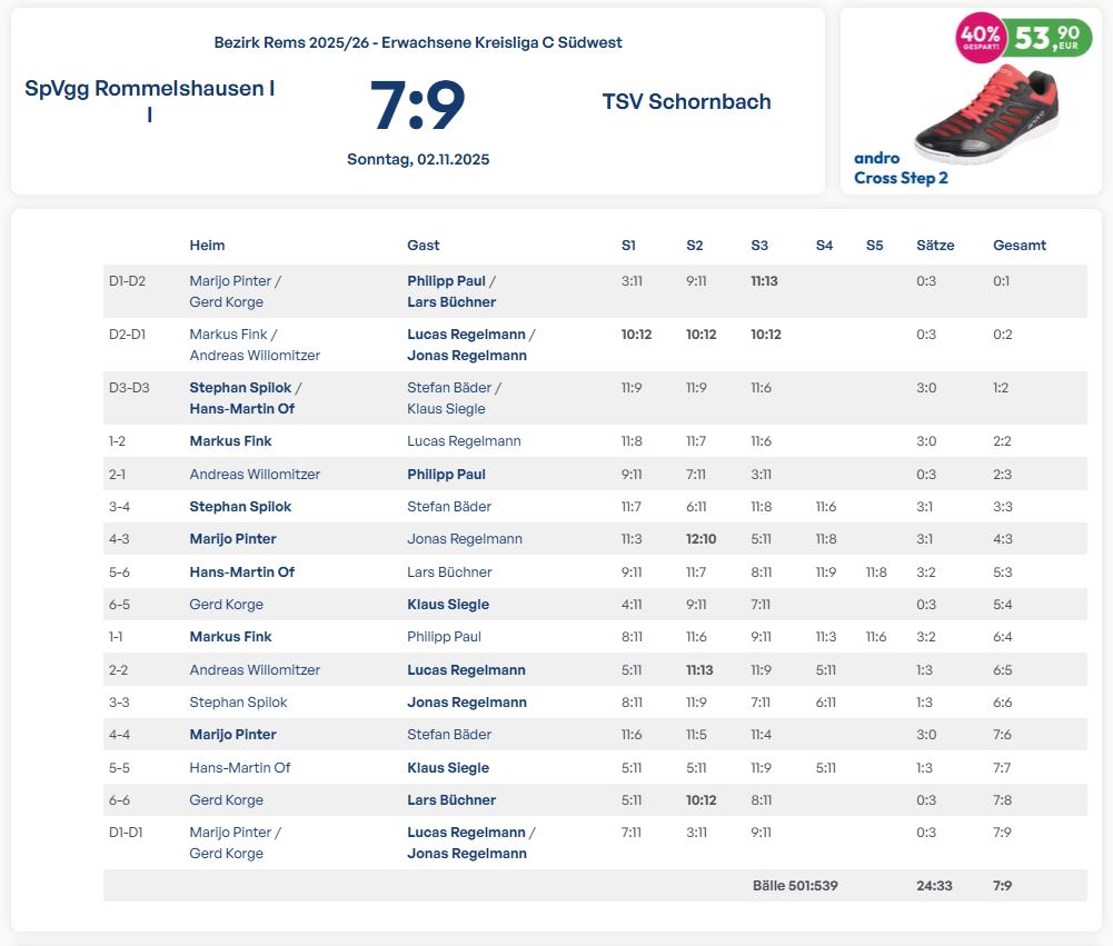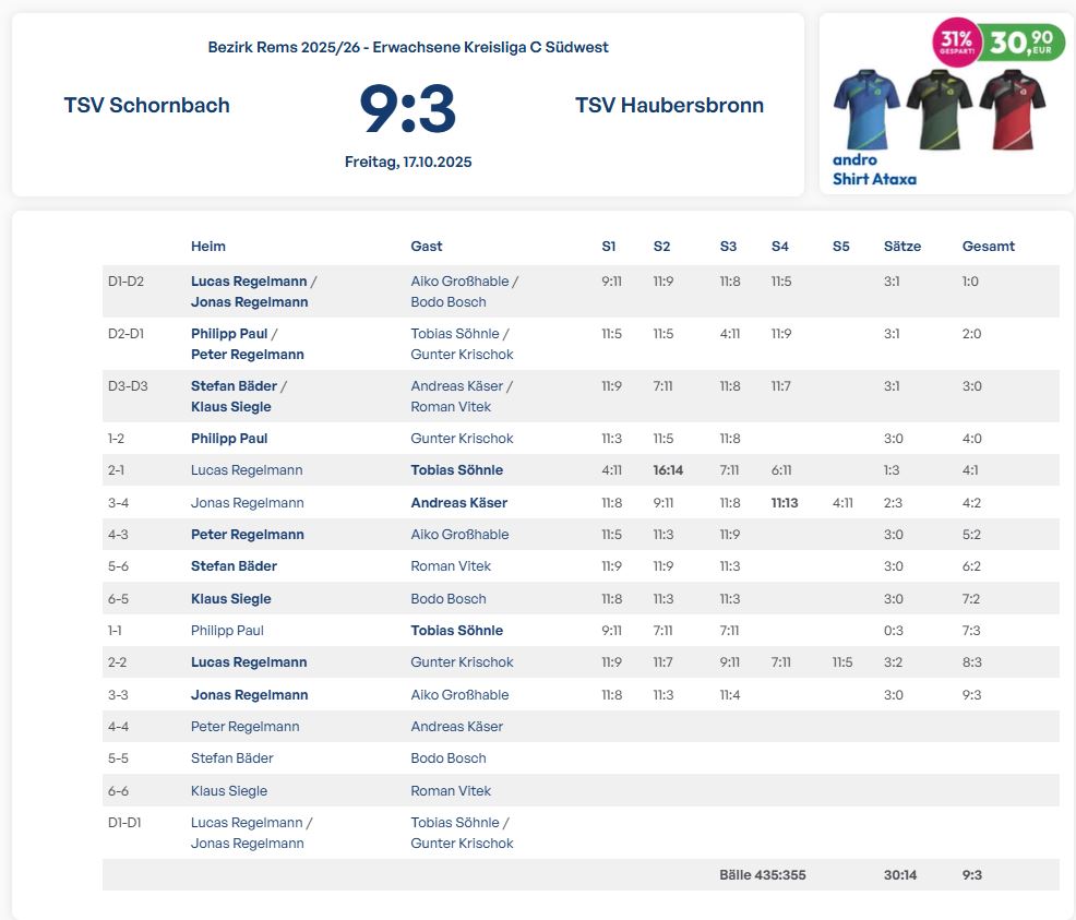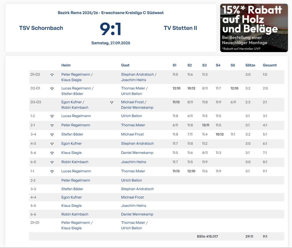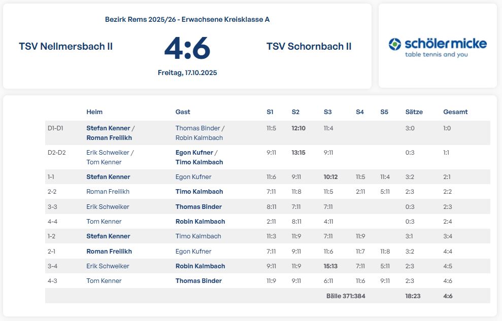TTC Hegnach III vs. TSV Schornbach Sa. 15.11.25 13:00